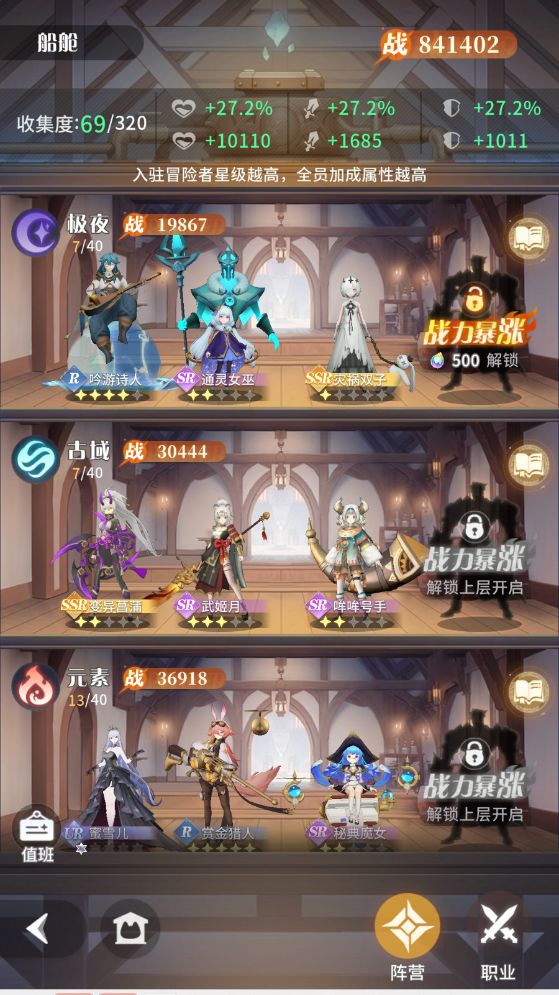 • 【后援-船舱】船坞在37级会解锁阵营的第四列位置,40级会解锁职业的第四列位置(战力会提升特别多),共花费1w星钻