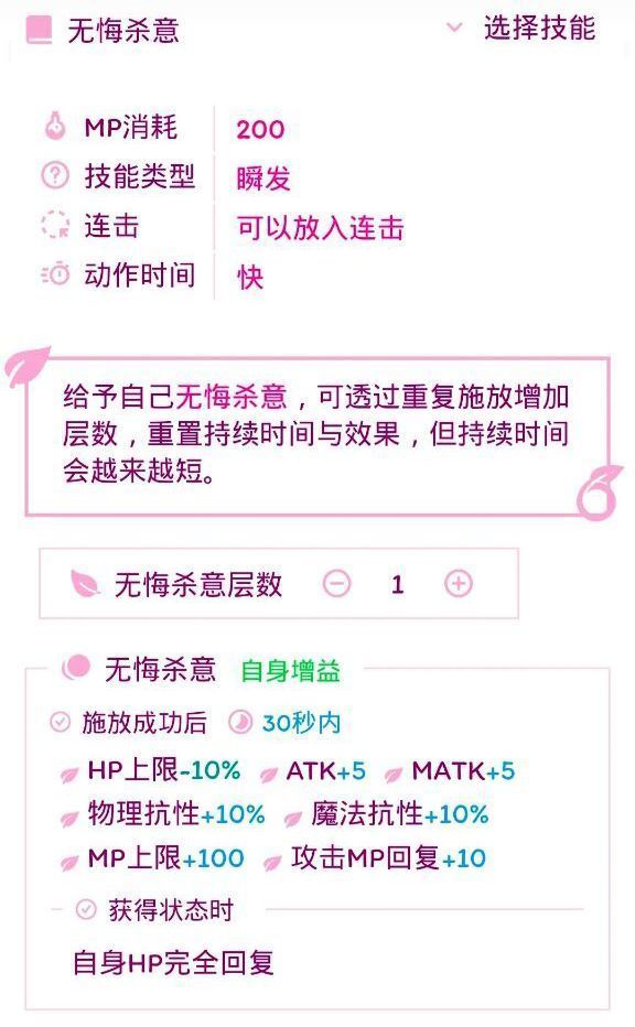 - 后悔杀意,点5路过或者点10,不要和神速一起开(当血药马上切换地图或者结束战斗可以考虑)