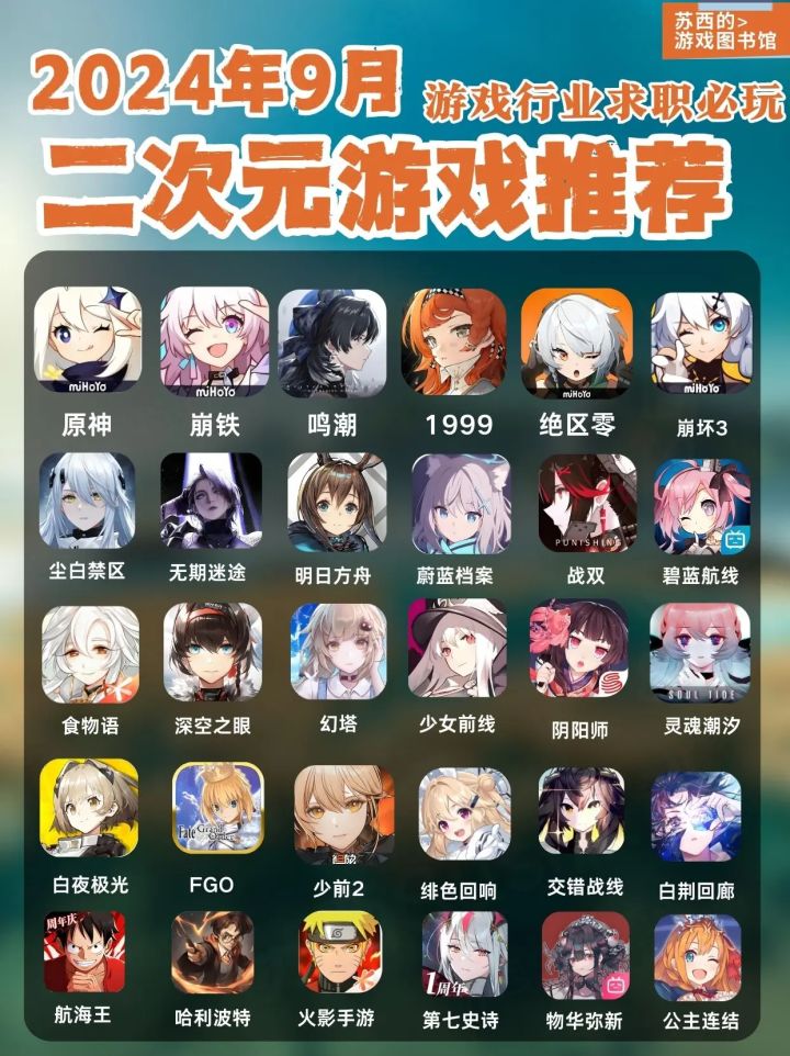 以明日方舟、FGO、阴阳师、碧蓝航线、少女前线1为主,都属于很多年的游戏,口碑剧情和玩法经过长时间的累积内容足够的丰富了,可以体验一下,感受下之前的二游和目前的二游新产品的一些内容差异,美术、剧情还是设定。