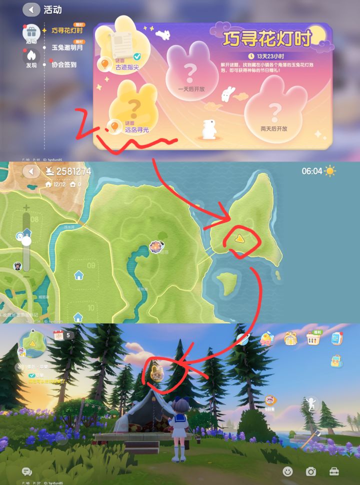 巧寻花灯时第二个 远岛寻光:如图一位置