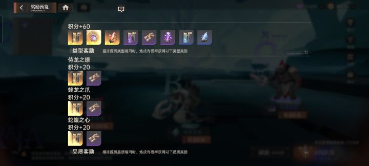 ②同一横排品质相同,奖励同品质及以下,