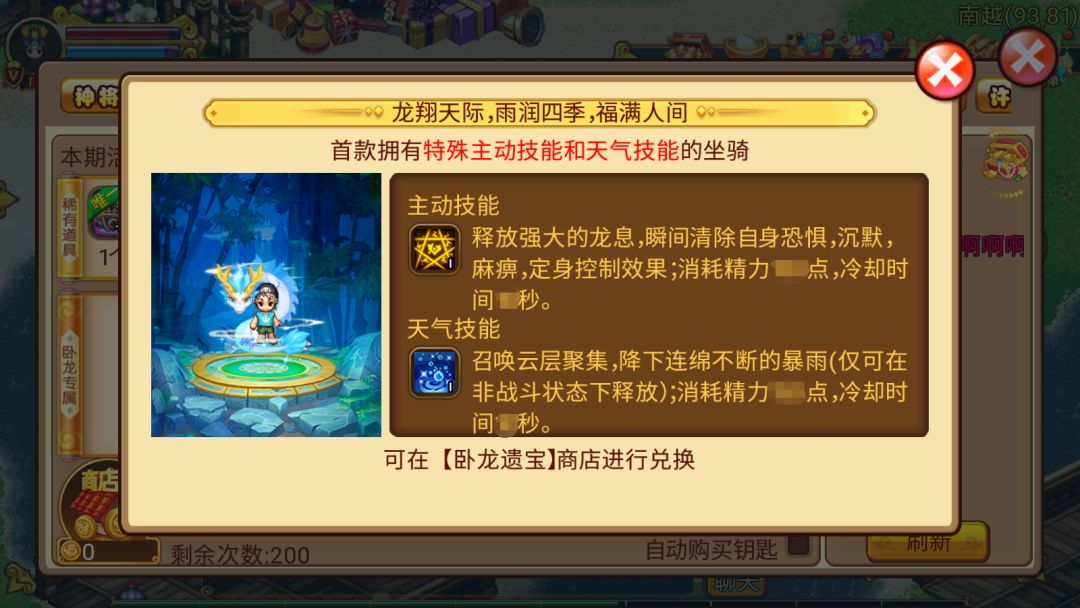 【兑换条件】神龙祝福x3、卧龙币x5000