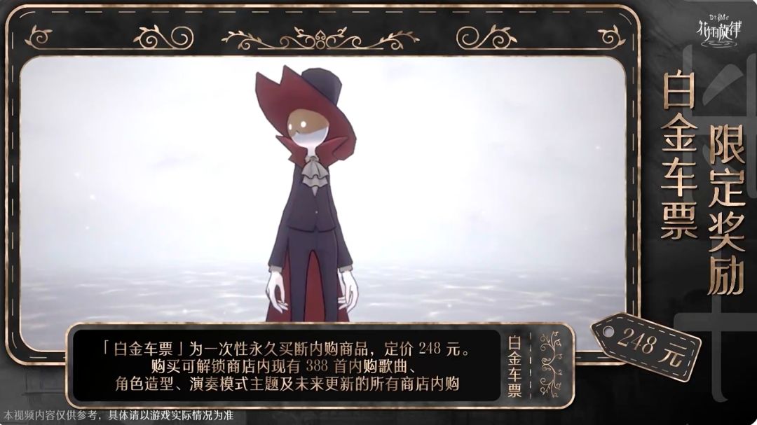 《花雨旋律》国服今天上线,本体限时 15 元,原价 18 元;购买游戏内 248 元「白金车票」,可一次性解锁商店内首发及未来更新的所有内购商品。上线即可领取角色造型预约奖励!