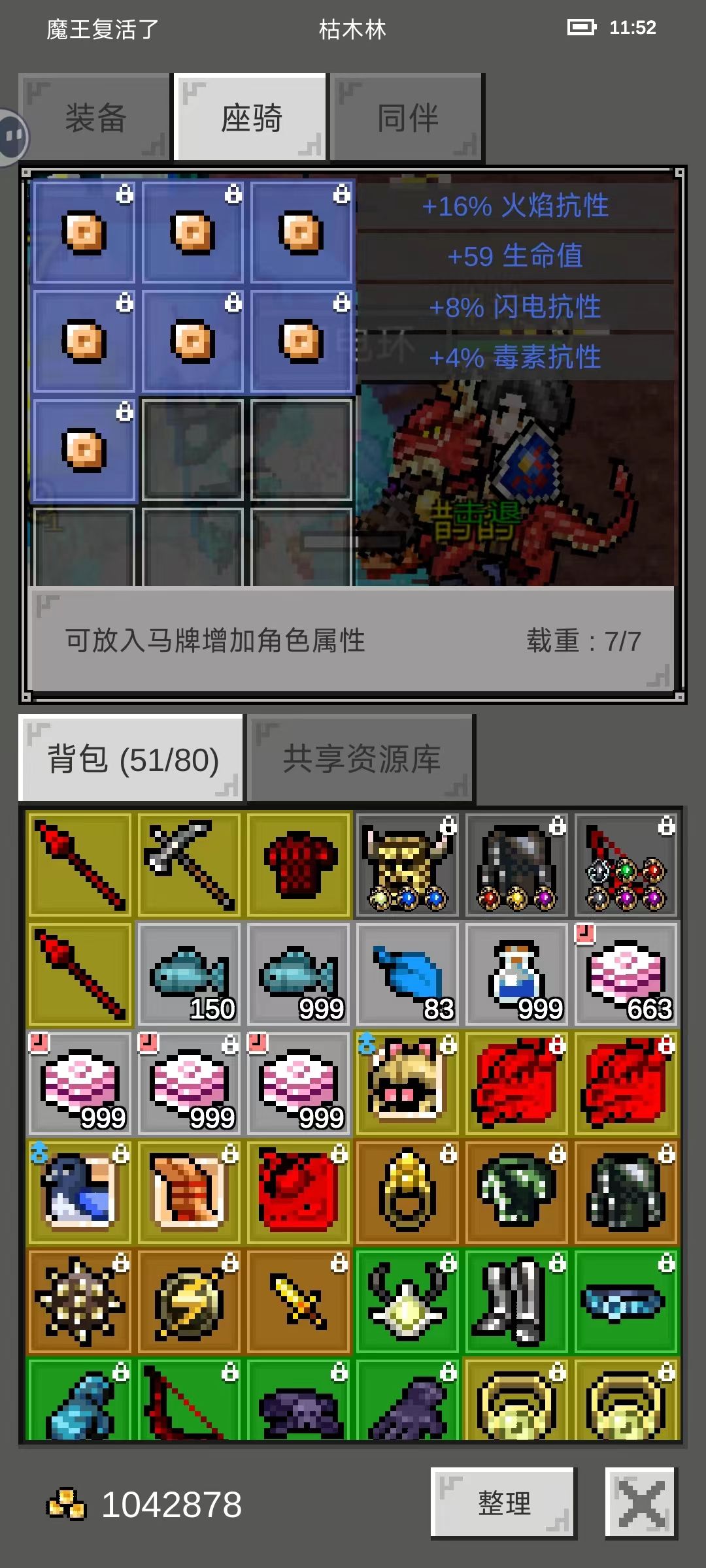 高载重坐骑,带1载重加血量的马牌,抗性无所谓,只要加血量。