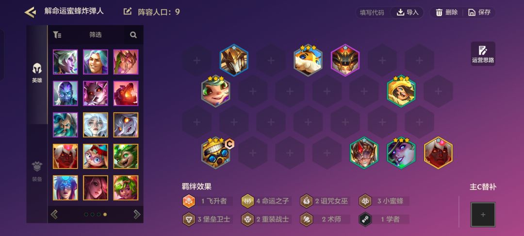 开局自然上人口,优先摸3小蜜蜂或者3个一费卡。连败垫底去选秀摸炸弹人装备,攒利息不上人口,在6级前尽可能把三个一费卡抽到3星(6级的时候1费卡会变得有点难d),在上6级之前可以先3小蜜蜂+2女巫用着。之后上6级把努努也抽3,蛇女来的多也能抽一下。这个期间如果找到命运卡就留一张,一张就行。至少4个三星之后上人口补命运之子就行。