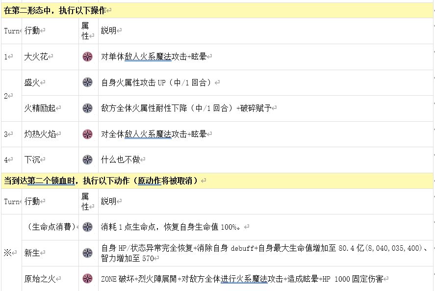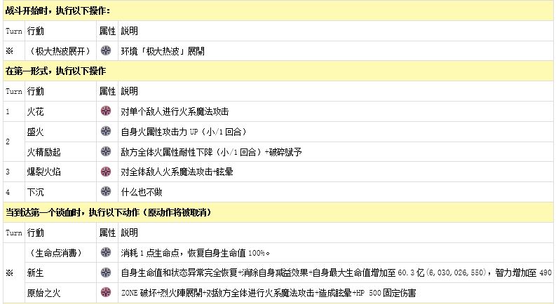 当生命值低于50%时,敌人的生命值会因“极大热波”的效果和疼痛期间的固定伤害而大幅减少,但当回合结束且剩余生命值低于50%时,“新生”将会生效,以满HP复活。