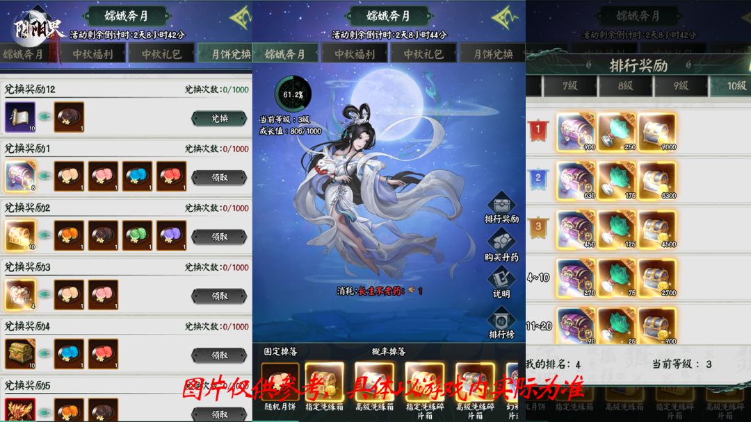 玉魄东方开,嫦娥逐影来。正值月夕佳节,丹桂飘香,秋叶凝红;皓月当空,情意浓浓。献长生不老神药,赠广寒仙子秘宝。集八色月饼,兑绝世神兵。探寻月宫秘境,赢取中秋豪礼!
