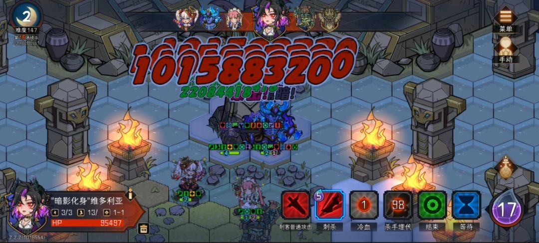新赛季把暗刺升到了三命,队伍和上赛季差不多,只是把人马换成冰骑,因为冰骑能扛,能控,而且塞壬之歌的减益效果配合暗刺快速清小怪,还可以大范围铺冰地形。冰骑相比于人马只是少了一些增伤和速度,速度在沙漠赛季有用,这赛季作用很小。