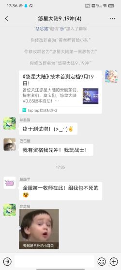 - 群组非随机名字、群内分享悠星大陆测试信息、群组需要4人、QQ群、微信群均可