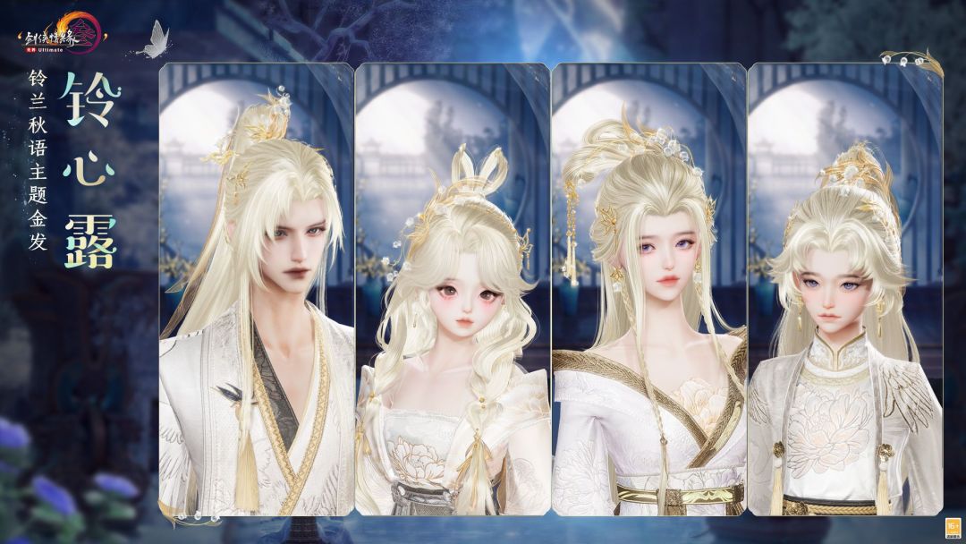 另一套则是色调偏冷的铃心露套装。外装的整体设计端庄雅致,几缕金色长发轻轻垂于额前,更显人物温婉悦目。当前两套外装均已上线,感兴趣的侠士可以到游戏中去体验一番。