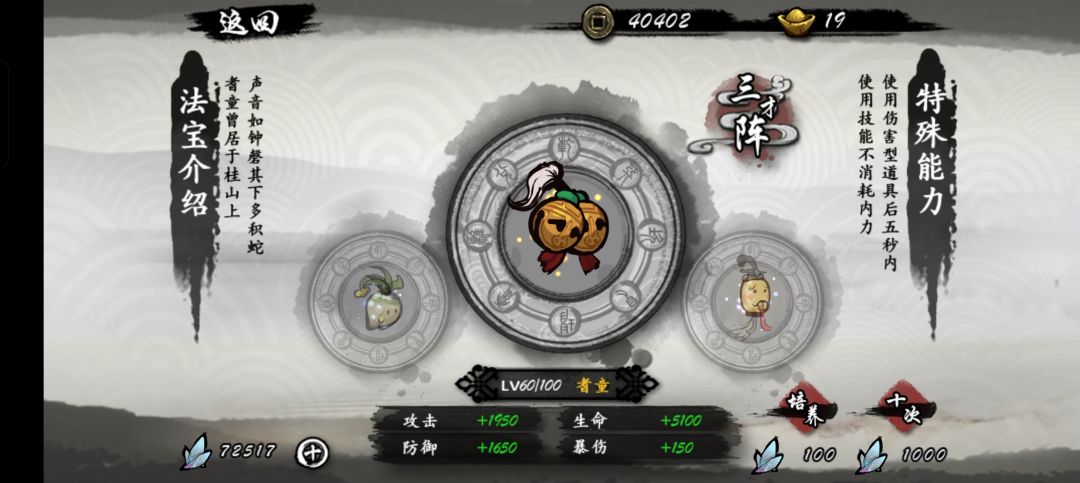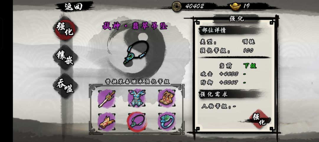 剩下的也没了太多追求,我玩游戏现在不喜欢肝,就每天刷几个图,然后挂挂机,扫荡一下八卦!我的八卦都是5(橙)+3(紫),攻击防御能够最大化!极致的输出和足够的防御,游戏就简单了!例如18000防御,小怪碰我一下就半血,20000防御基本就不怎么掉血了,所以八卦气血的可以换紫色,套装也都加攻击防御!尽量洗攻击防御!暴击堆1000就可以了,再高性价比就一般了