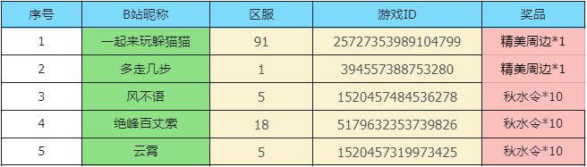 恭喜以上5位少侠中奖!奖品将在7个工作日内通过邮件发放,请各位少侠注意查收。