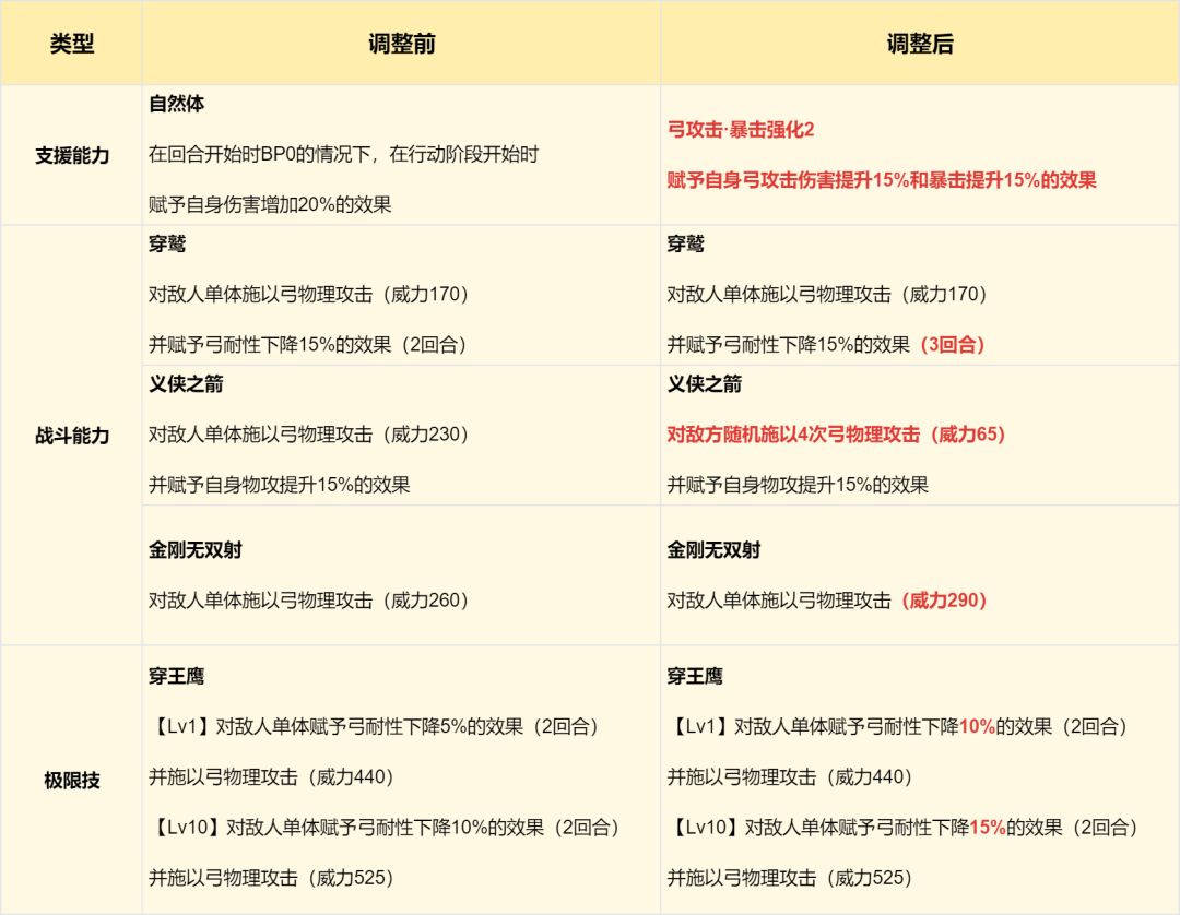 对本期闪光的旅人“卡杰斯”进行了性能调整,详情如下: