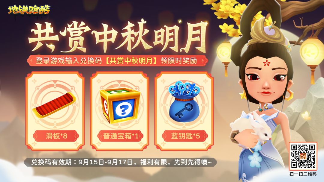为了庆祝中秋,跑酷君为大家准备了一份兑换礼包,数量有限,先到先得哦~