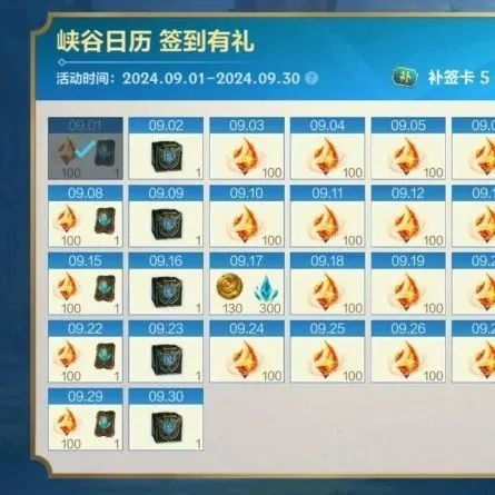 截止至9月30日,召唤师每日登录后,前往峡谷日历签到即可领取好礼!活动期间日历签到最多可获得龙魂水晶*2400、蓝色晶石*300及魄罗币*130奖励。