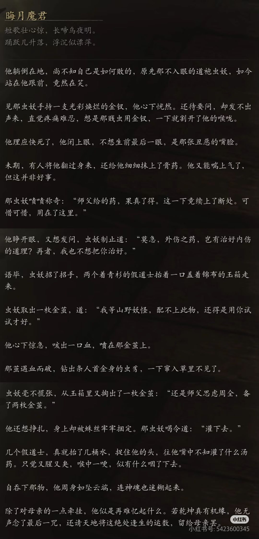 曾经的昴日星官,被百目魔君暗算,喂了仙卵,异变成晦月魔君人不人鬼不鬼的样子看着影神图最后:自吞下那物,神魂迷糊,除了母亲再难忆起什么,若乾坤真有机缘,他无声念了最后一咒,还请天地将这绝处逢生的运数,留给给母亲罢