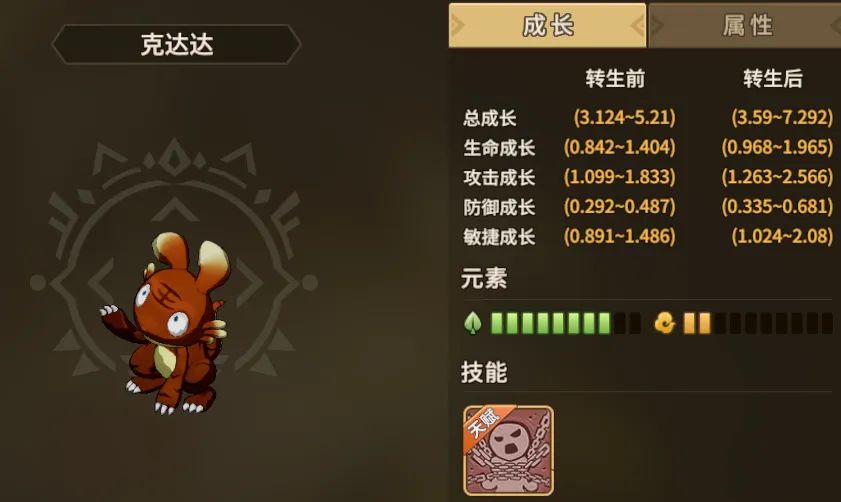 综合表现1星,当前版本不推荐。天赋与鸡系相同,但整体偏弱。