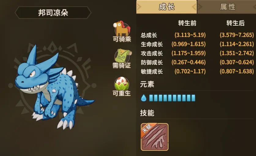 PVP:天赋弱,水系骑宠没上场机会,不推荐