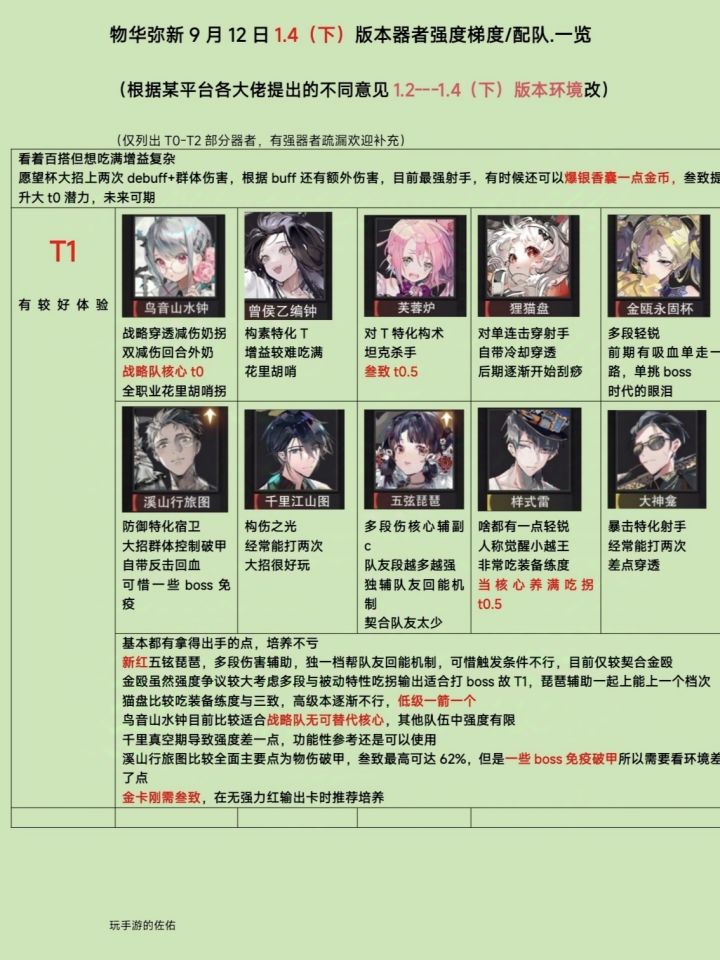 【物华弥新1.4下版本】梯度/配队更新解析❗
