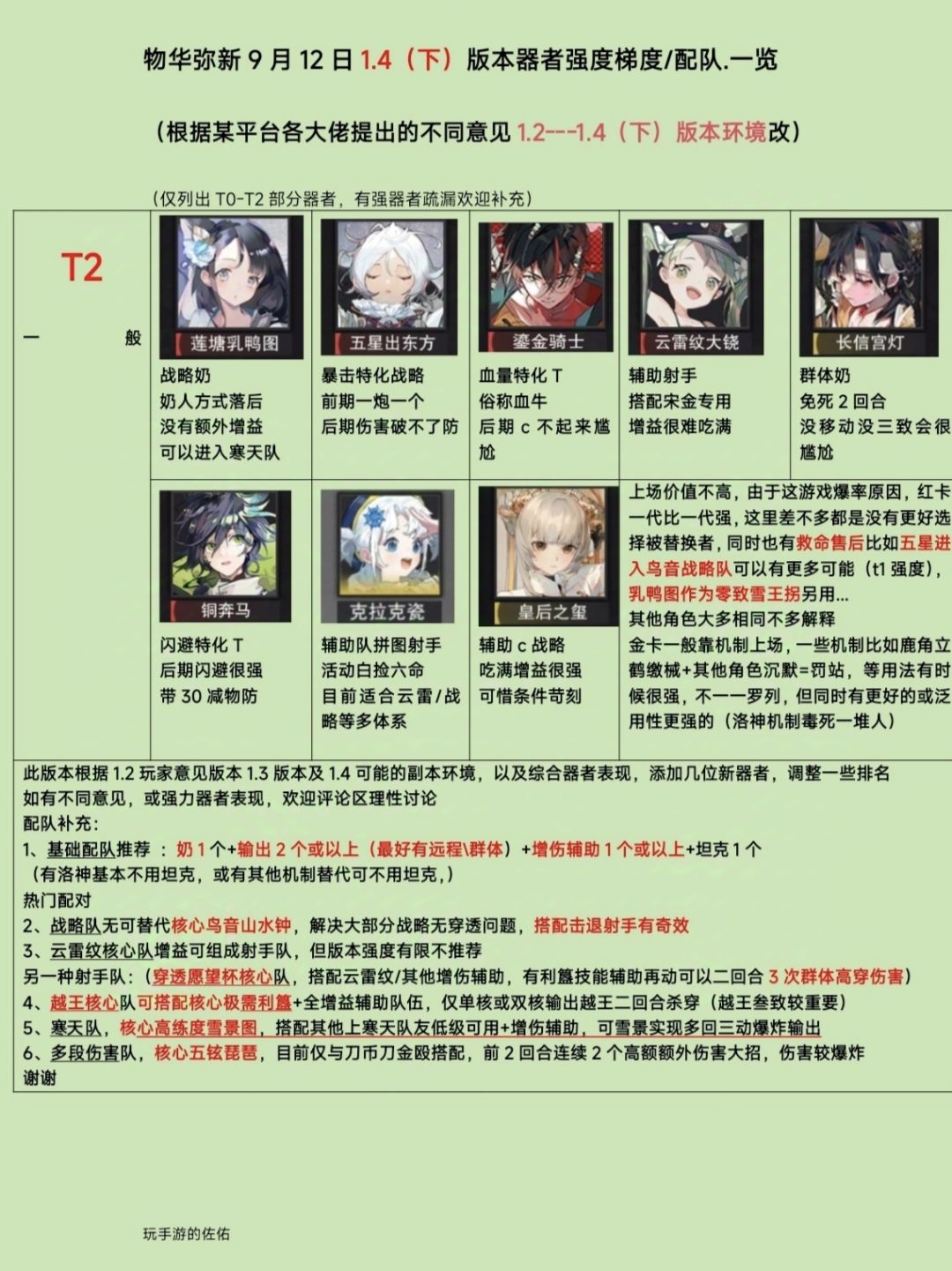 一、版本目前器者的梯度配队(图一~图四)