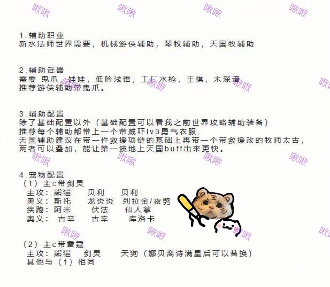 【前言】赶上跨服世界也加入了辅助奖励,很多小伙伴困扰纠结辅助如何搭配才能打出更高伤害情况下,啾子继续携手我工会敬业员工996红红同志为方便大家整合一篇为法师辅助专题,武器宠物之类解析可以看另一篇,话不...