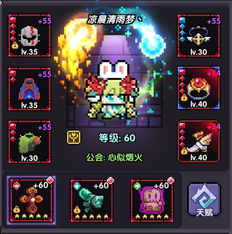 装备主要带流血头挂流血,救援配合圣力回响缩短技能cd时间,魂系可以选火焰领主给攻强,也可以选啊米魂系(贝利亚主孔)减boss暴抗