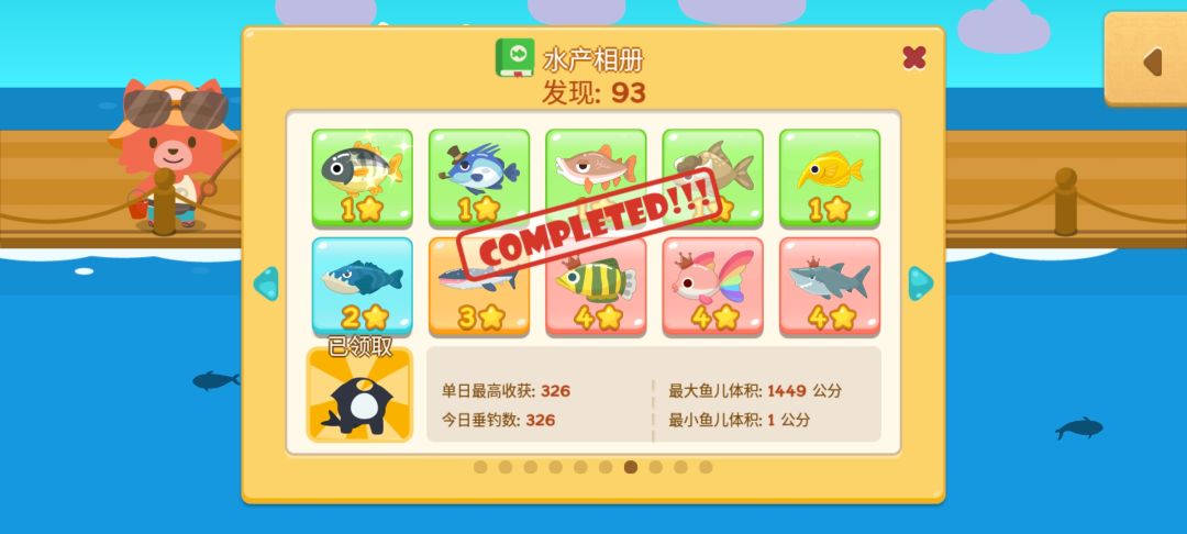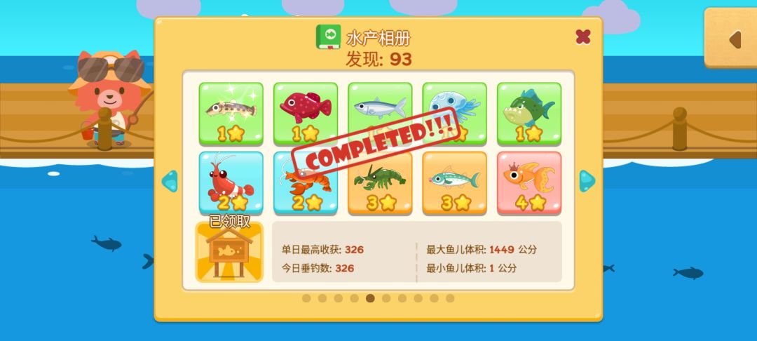 魚類收集度93/100 晾一下