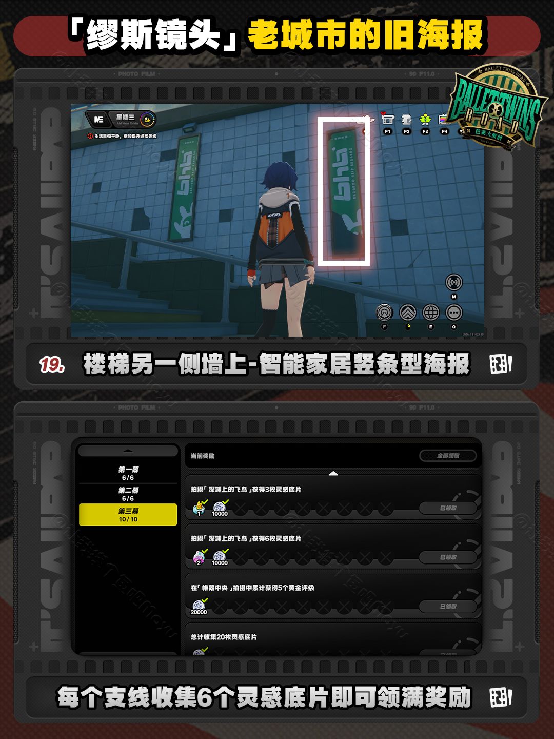 小建议:第三天的「灵感底片」分别在【芭莱大厦前/黑雁工地旧址/斯科特哨站】完成(每个支线任务获得6个即可拿满奖励哦~