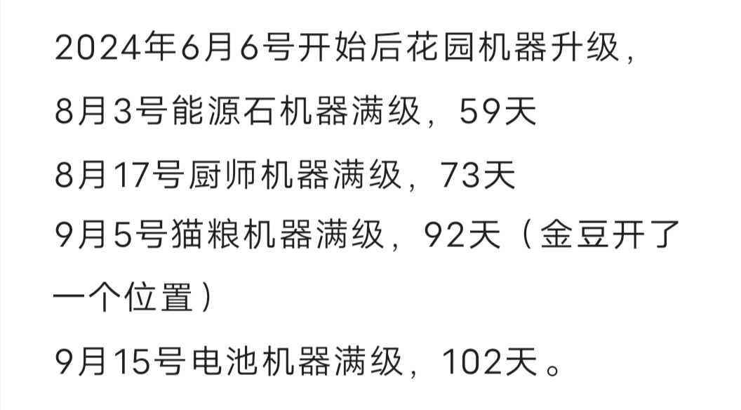 9月5号猫粮机器满级,92天(金豆开了一个位置)