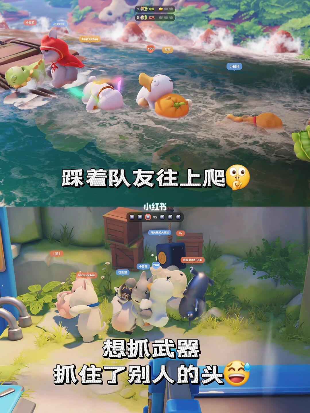 4️⃣小动物们又可爱又笨拙,打起架来总像犯了大病,每次攻击都很尽力地瞄准对方,还是会被歪七扭八的出拳气得血压飙升,但对手也在同样的歪七扭八拳头偏到天际,两个打着打着上演一个“二人转”,这种高血压就会变成对自己的忍俊不禁,想抓武器时抓住了别人的头,一个飞踢把自己铲出地图,抱住炸弹被炸进栏杆,掉进水里踩着别人往上爬,你永远不知道下一幕会怎么让你捧腹大笑,简直是个笑点十足的喜剧剧场。