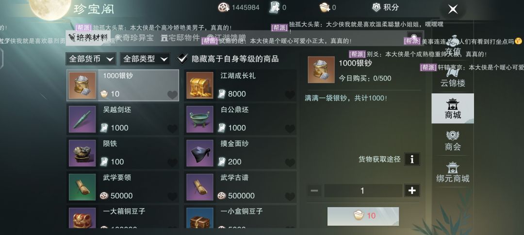 装备有耐久,目前身上的装备是靠合成搞的,这个合成是概率合成金装的十次保底,技能改了少林内外防的技能改成了需要火伤,元宝可以买宝钞(宝钞就是银子但是购买力高于银子),还有和逆水寒一样的元宝买时装宝钞卖时装操作,看似精简了战力系统,但是别忘了这些系统在以前就是吃钱大户,靠这些东西氪金一样是可以杀穿全服的。