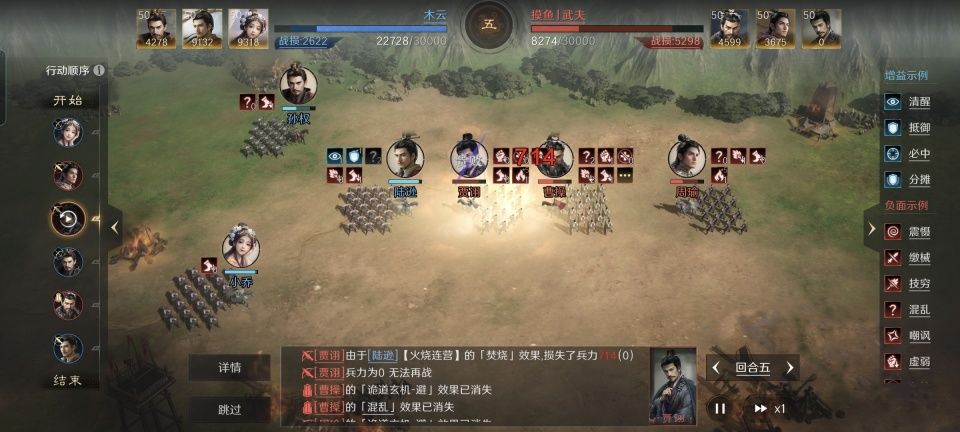 在此特别鸣谢游戏ID名为“木云”的玩家朋友,也是我们“天行九歌“同盟的盟主,为本文提供了宝贵的创作素材。我经常都会写他的战报,不仅因为是同一个盟的关系,更是挺佩服他的脑洞和创意。此番战斗,木云以小乔、陆逊和孙权摆出锥形阵,仅用半场就把对面的贾诩给打废了。顶着这么多的debuff,还能如此迅猛的拿贾诩做一血,当中蕴藏了哪些奥妙呢?