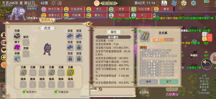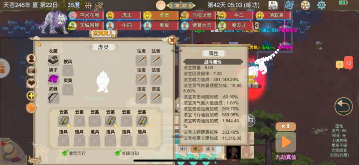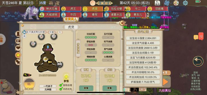 由于我手残、没有测试30内打门派,过程中你也可以做寄托和装备在次加强你大哥,能够达到完全体(在寄托过程可以减200阴、渡劫7次也可以减大概300左右、无需资源)(两张图卡bug不是完全卡、勉强280万、完全卡47万加成、估计350万以上)快去实验吧。