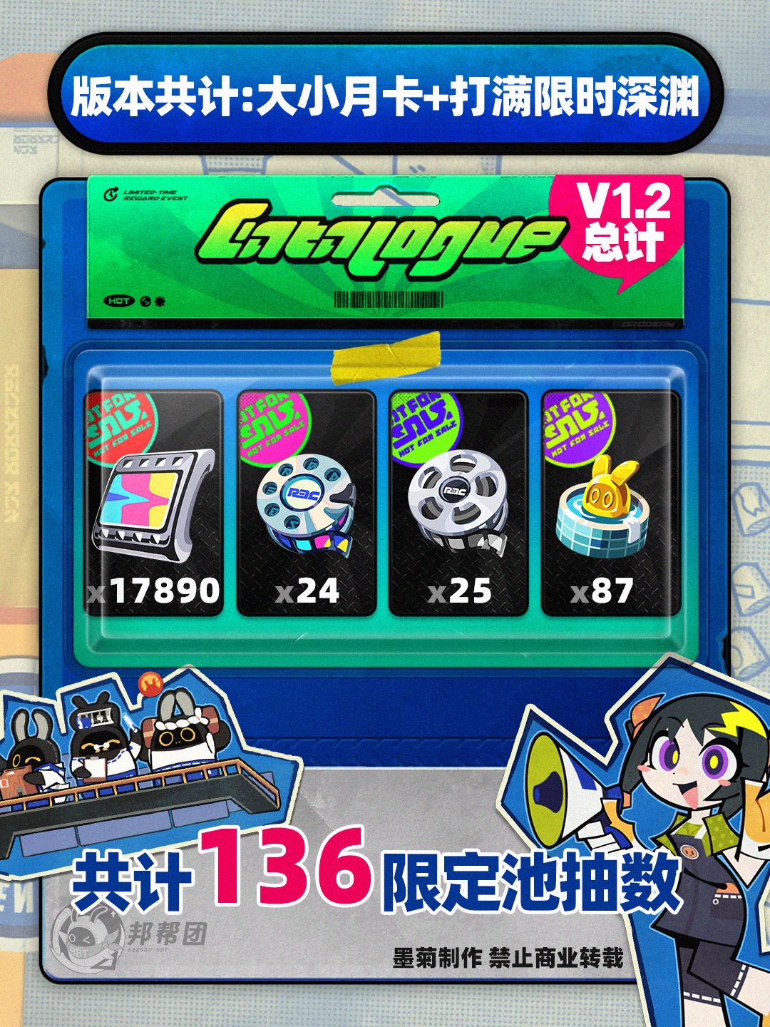 今天给大家带来V1.2版本抽卡资源统计,包括以下几个档位: