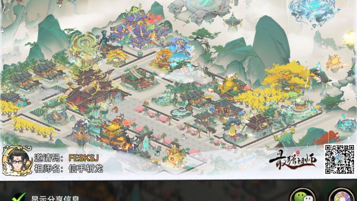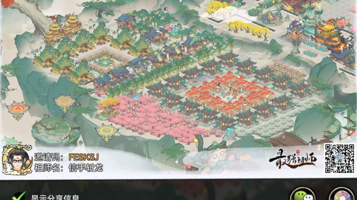 ③西北城区:因为主城区行政板块、西城区工商园林板块设计严密,所以此区域使用面积较为宽裕,蕴灵古井和灵田主体在此放置,桃源酒家、仓库、庶务殿(右下角快捷键和弟子栏可以快速进入庶务殿)这些不需要点击的建筑在此放置,终是体现出我宗门的松弛感和边缘感。