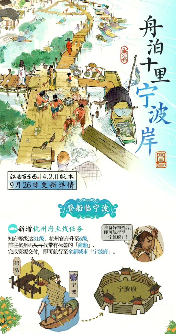 )、杭州官府升至6级的知府可从杭州府出发乘船前往宁波府!1 民宅升至4级和5级将解锁宁波专属外观