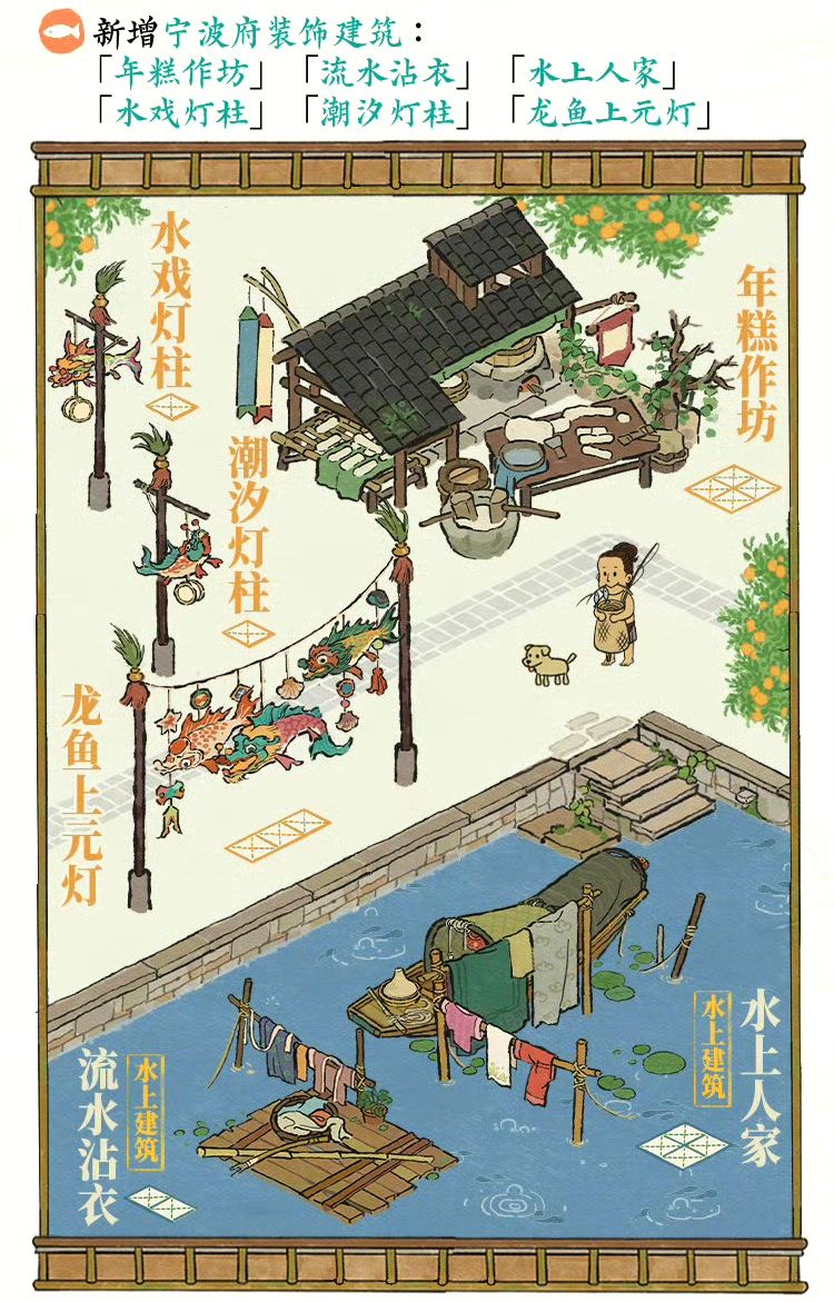 6 新装饰建筑:3种龙鱼灯柱颇具特色,年糕作坊黯然失色,水上建筑依然上大分🥰!