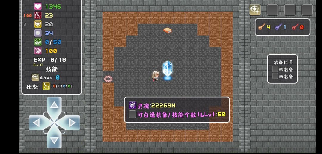 现在我们来到50层,感觉有点顶不住了,现在水晶属性升到250,我们把钱买光,这里因为我带了手里剑,所以防御需要点的多一些。