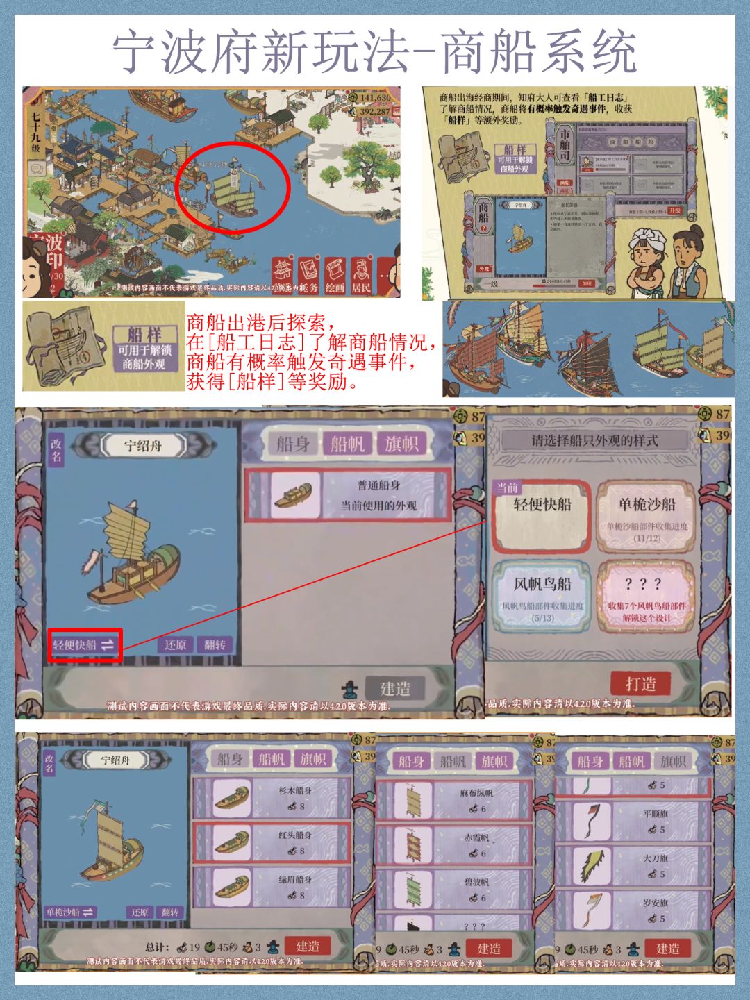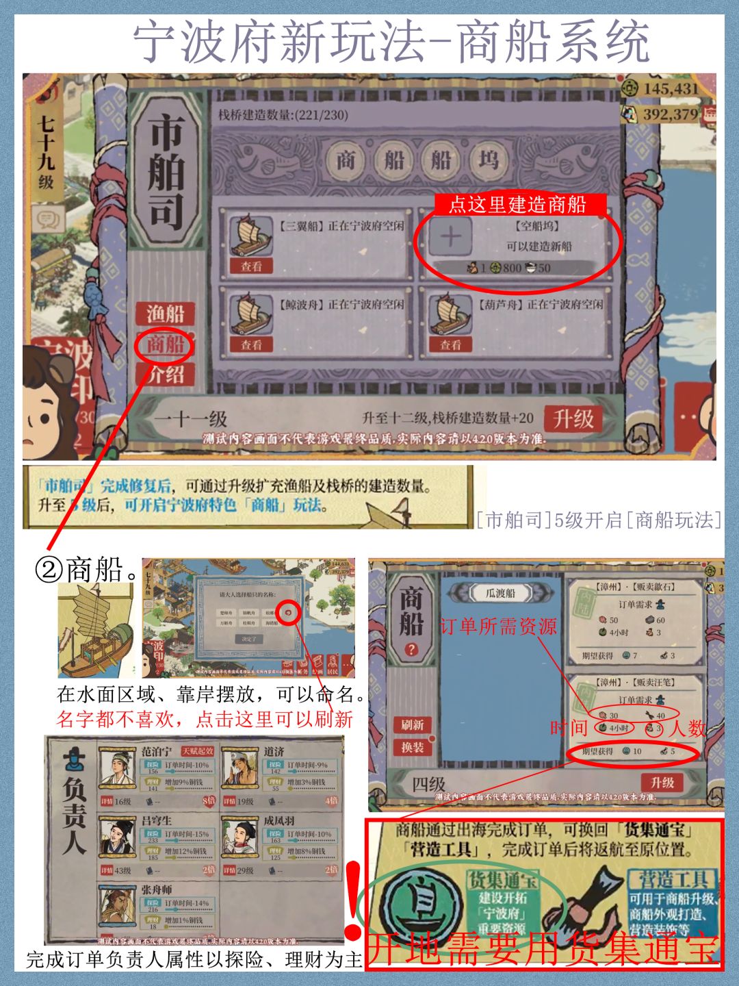把直播又回看了一遍,大致上把宁波府的玩法理清楚了,还是比较简单的,初步感觉只在开地时候比较肝资源【货集通宝】,以及后期填仓库的话资源【鱼获】及【鱼干】需要肝一些。