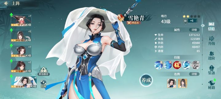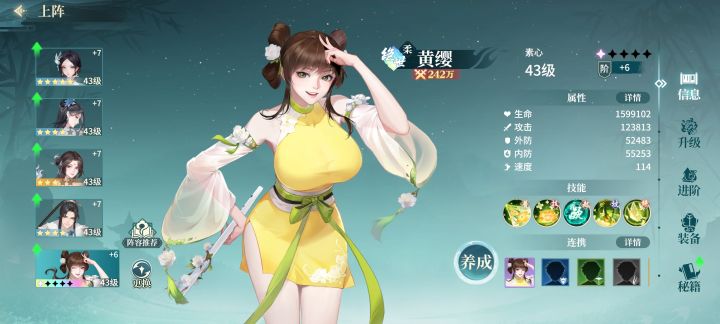 三,前期资源分配,个人建议,培养顺序,奶妈/辅助>前排>输出,首先你得站得住,活着才能有输出,所以输出角色和前排尽量选择“高星”,本人前期选择秀锦和采蓝,纵横群攻,整体玩下来不错,十分推荐。