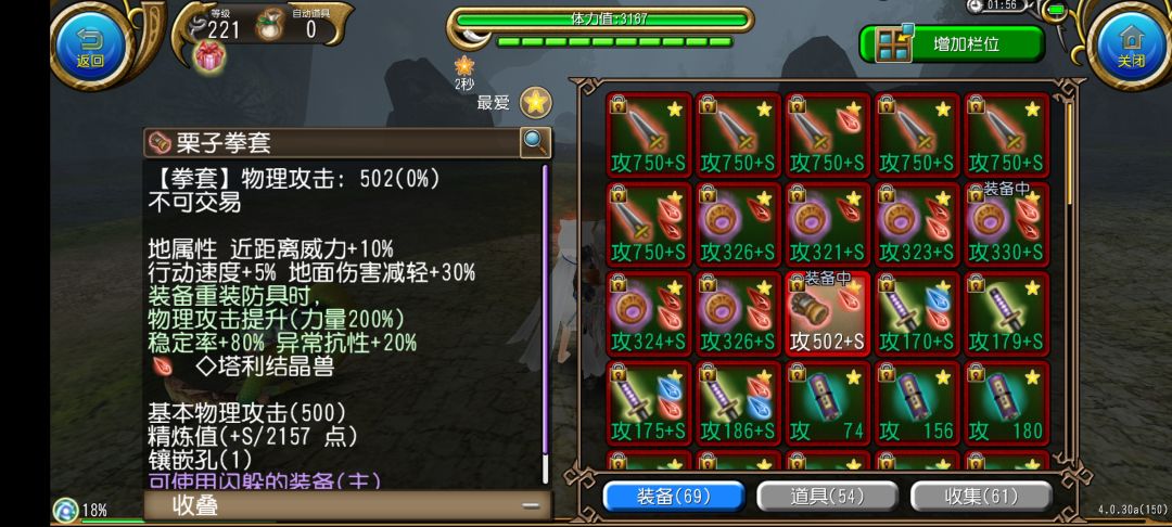 思路:拳魔不能开破坏者/化劲,面板过低(问了好多人站街才三千多),强度变低了栗子拳可以力量加点补充面板,相比熊猴拳面板更高,主力爆伤足够不用补一堆牛子,可以放心叠伤害,石头装备附魔都可以选择力%词条更便宜通用吧。
