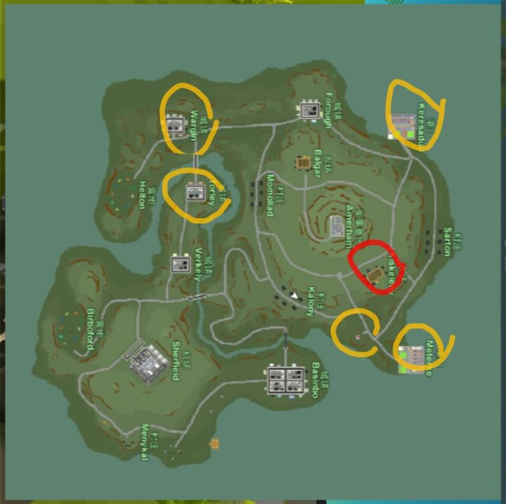 经过两个多星期的观察,图中橙圈是不再刷新保险箱的位置,红圈的农场不太确定 。