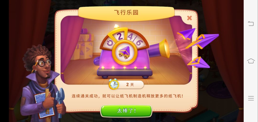 飞行乐园主要是在游戏中可以充能量制造纸飞机,意思就是在活动期间,开启主线关卡,制造机会利用激活道具触发特效来充能来产出纸飞机。闯关连胜更能为制造机升级,使其一次性产出更多纸飞机助阵通关。如果第一次顺利通关,就可以在游戏中获得两倍的纸飞机。第二次将会获得4倍的纸飞机,最高可以获得6倍的纸飞机哦。所以,抓住这一连串活动的机会,可以多通过一些关卡,可以更快的向前迈进,建造更加美好的家园。