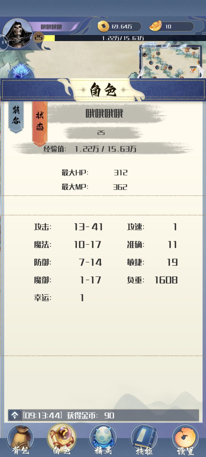 角色升级,只加Hp和MP这是我25级的属性