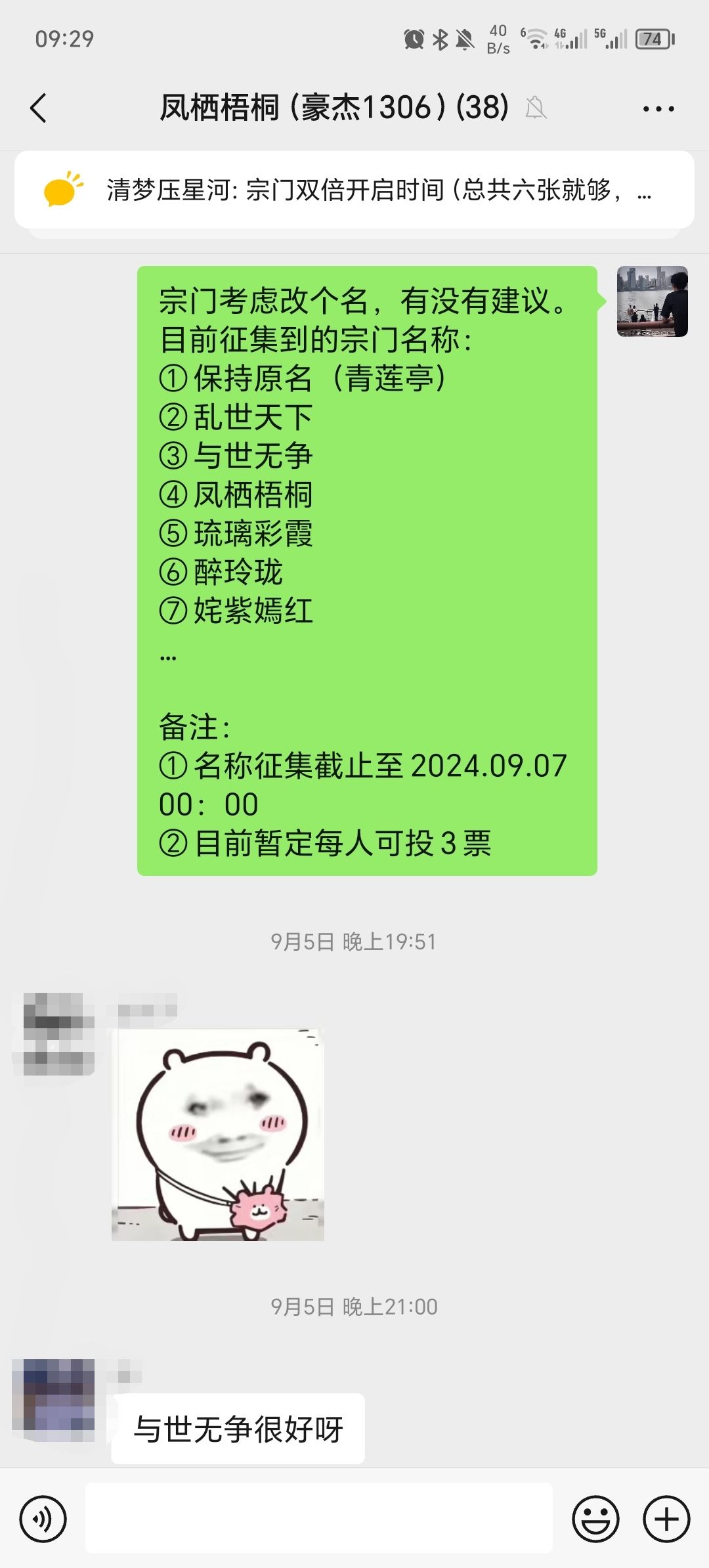 还有回归玩家时隔几个月又回到宗门,宗门活力又添色彩,以及宗门名称的全体投票选择。