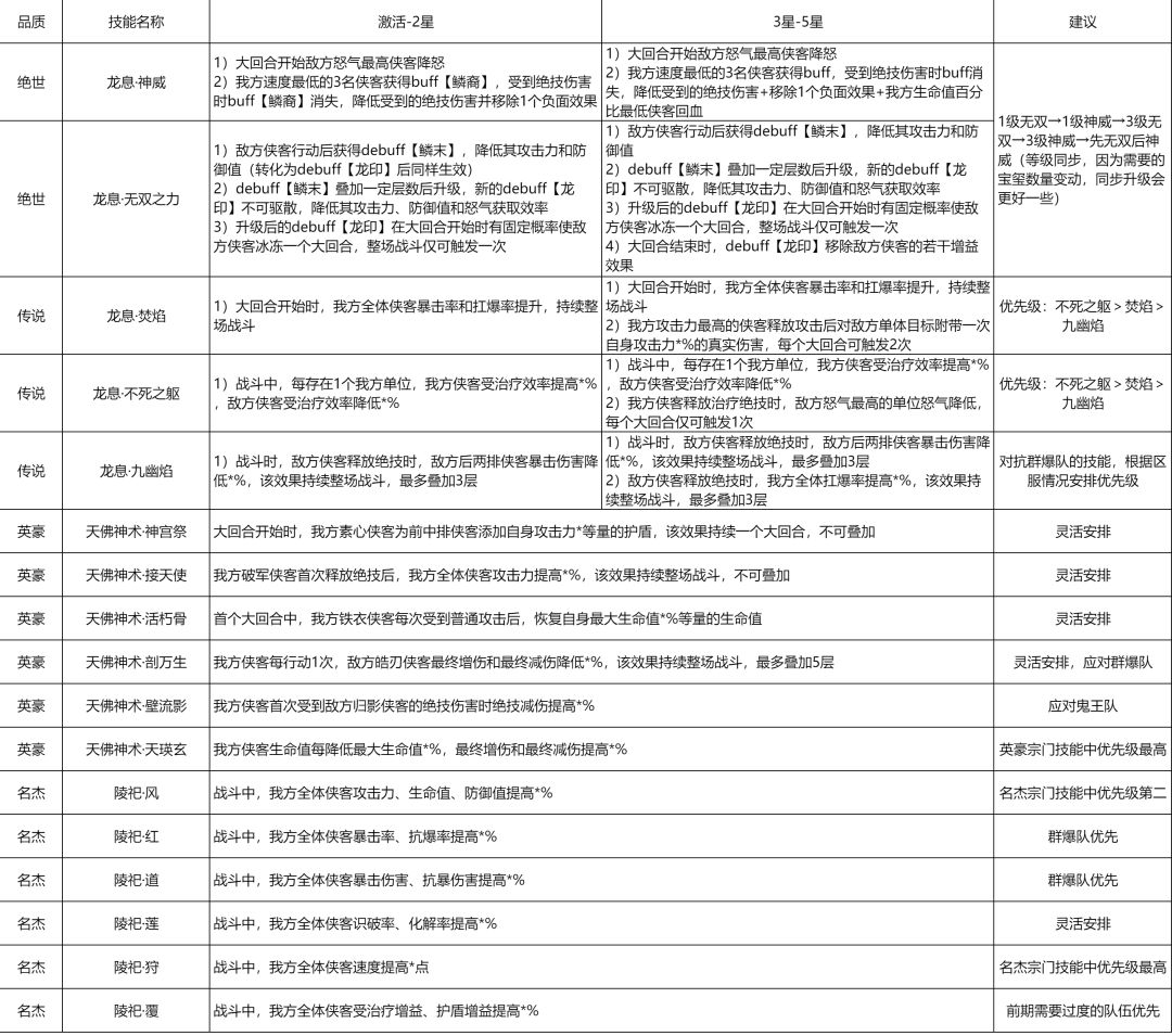 7)名杰技能优先级建议:陵祀·覆最高(速度),其次陵祀·风(提升我方全体侠客攻击力、生命值、防御值提高*%),其他灵活安排