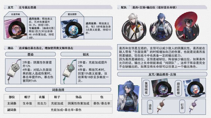 斋西的技能和言预能相互搭配,提升伤害。这两个固定搭配较好,剩下一个补输出位。