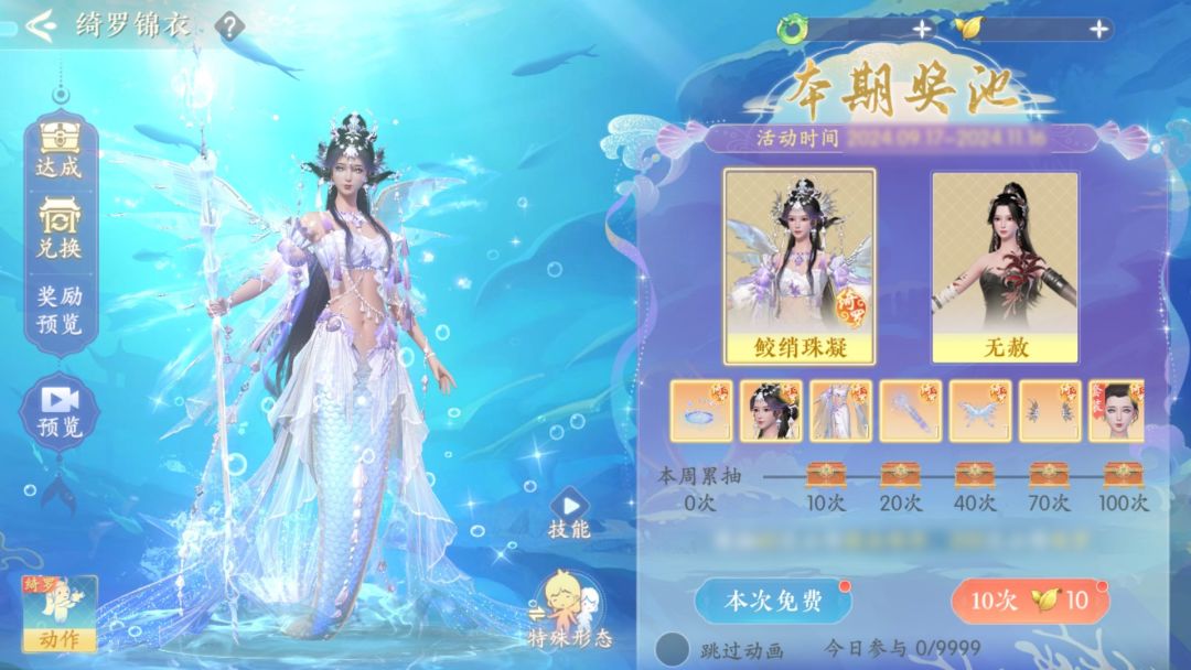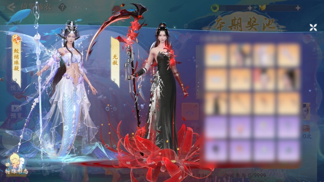 人鱼形态下的你,鳍扇摇曳,粼光汇集;化而为人,亦是仙衣璀璨,步履凌波。鲛人一族的神秘故事,将由你亲自演绎。
