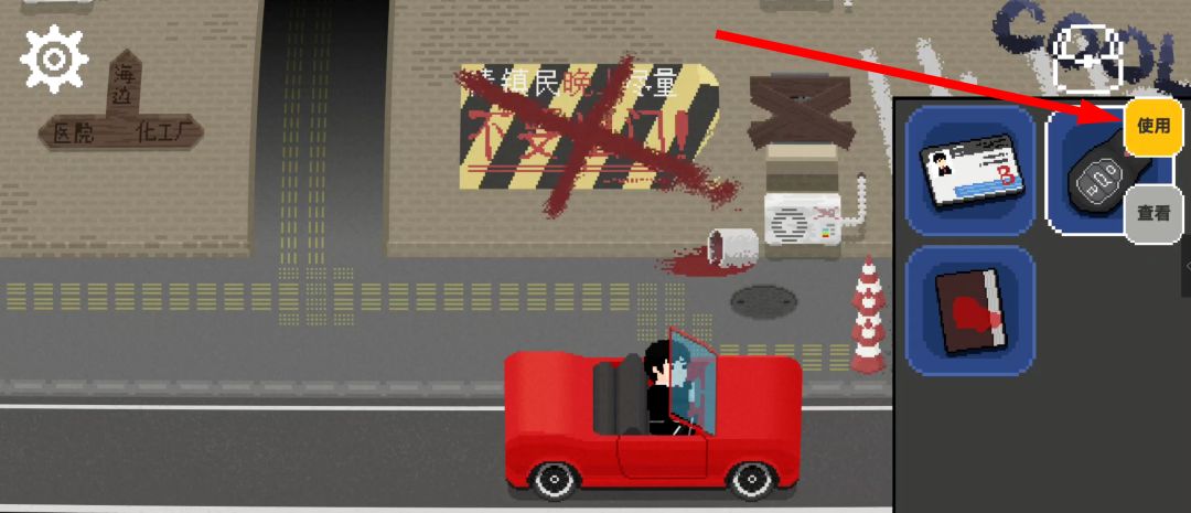下楼后来到外面坐上车,打开背包,点击【车钥匙】,选择使用