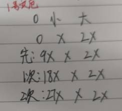 手写内容为灾厄每次攻击后的身材数据,假定小雌火为x,大雌火2x